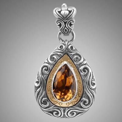 Sterling silver ring with 18K gold accents and pear-shaped gemstone.