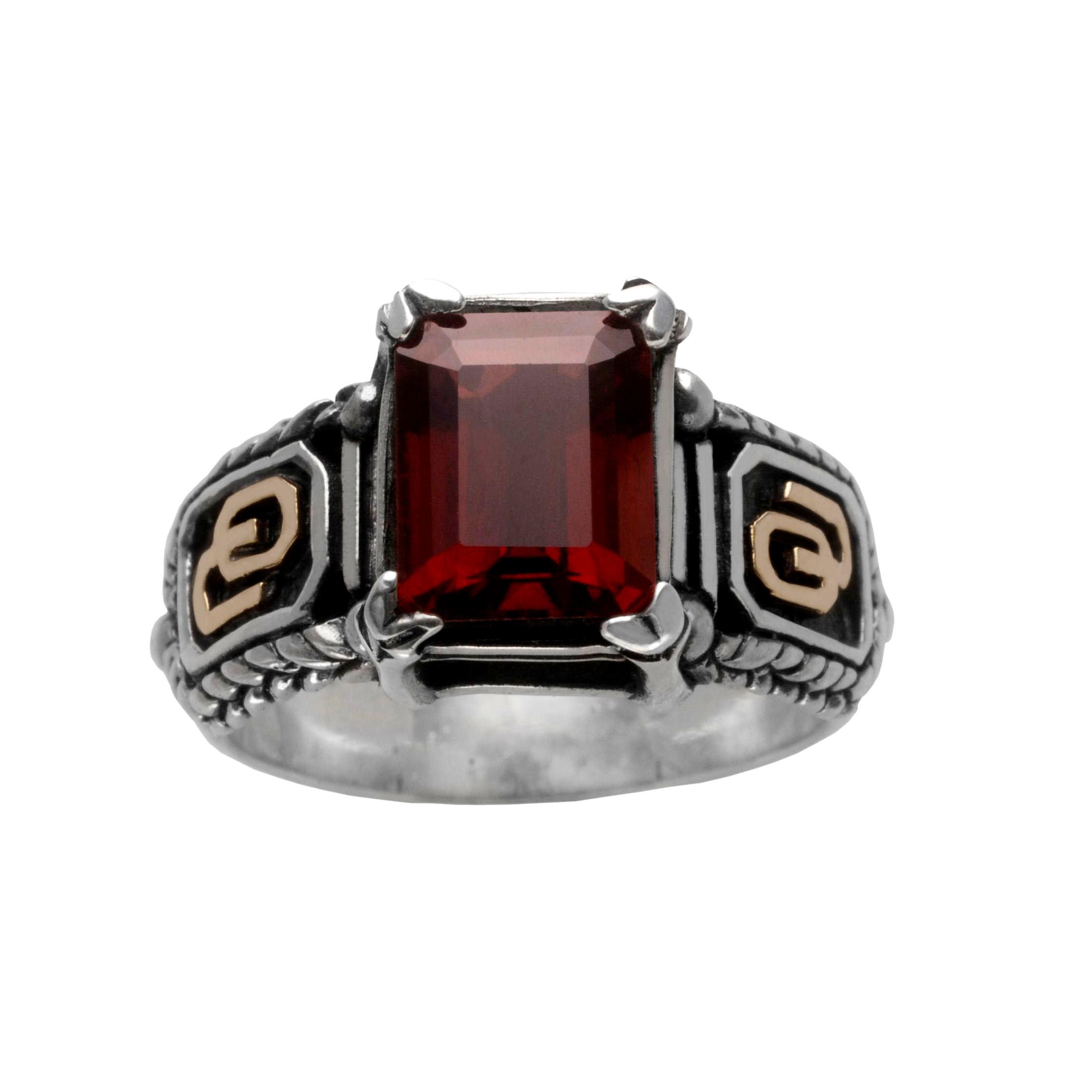 University of Oklahoma sterling silver garnet ring with 18K gold interlocking OU mark on each side.